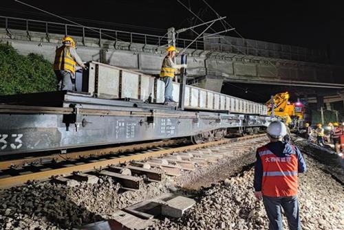 5月16日凌晨4時,隨著最后一片施工便梁從軌道車吊運至指定位置,標(biāo)志著經(jīng)過4個小時天窗點的緊張施工,15號線二期中梁山隧道下穿渭井下行線加固施工順利完成,為中梁山隧道正線安全下穿既有線創(chuàng)造了前提條件。
