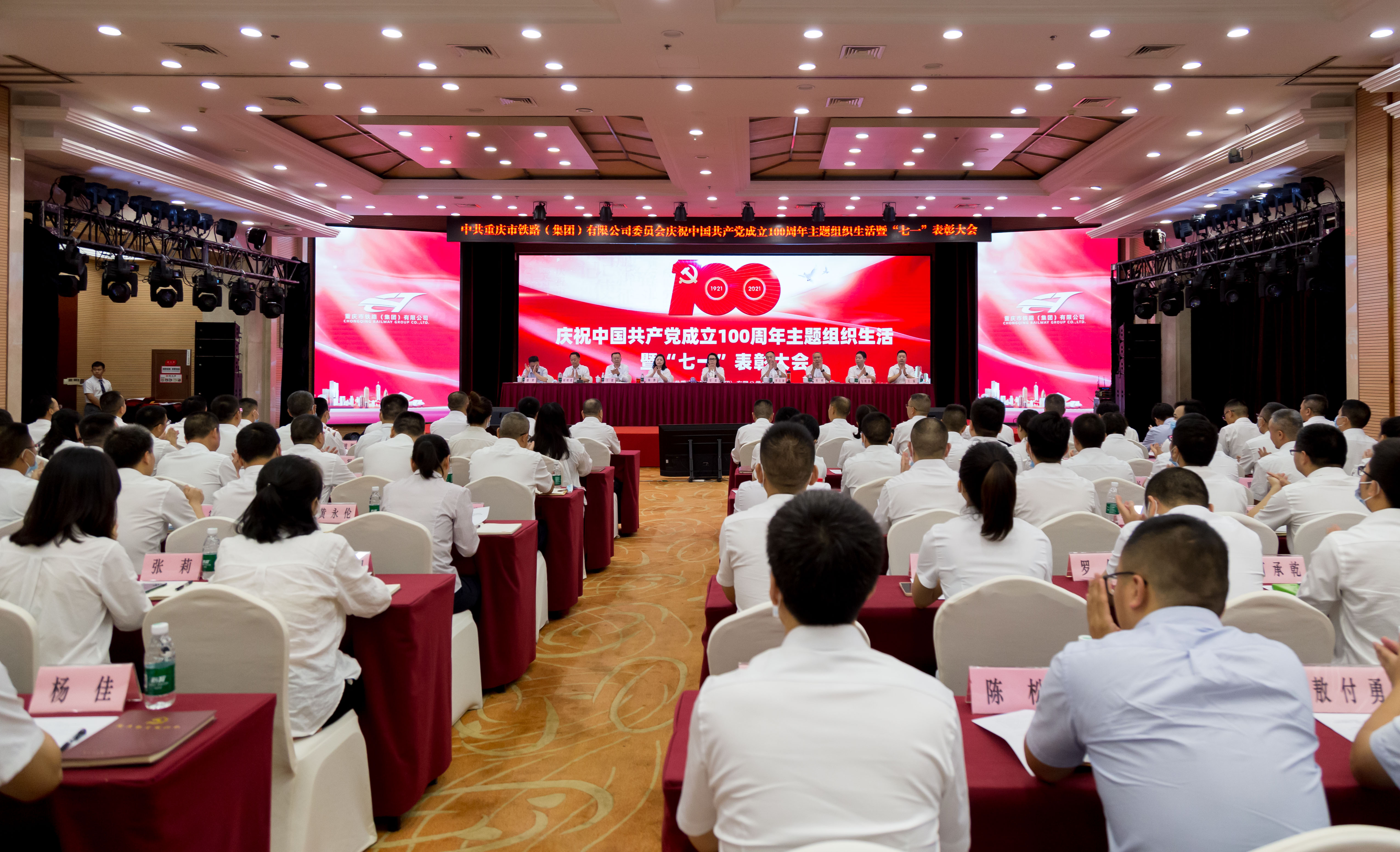 2021年6月30日下午,交通開投大廈三樓多功能廳內(nèi)氣氛熱烈、掌聲雷動。奏唱中華人民共和國國歌、重溫入黨誓詞、表彰先進(jìn)典型、先進(jìn)事跡報告、黨課精神洗禮……一項(xiàng)項(xiàng)莊嚴(yán)隆重的議程,將會場氣氛逐漸推向高潮,讓市鐵路集團(tuán)慶祝中國共產(chǎn)黨成立100周年主題組織生活暨“七一”表彰大會成為學(xué)黨史、悟思想、辦實(shí)事、開新局的一次成果匯報大會,成為百年黨史和市域鐵路發(fā)展史深度融合的一場精神大餐,成為市鐵路集團(tuán)奮斗謀新篇、啟航新征程的一次動員大會。