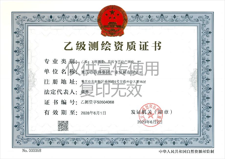 近日,市鐵路集團(tuán)產(chǎn)業(yè)公司成功取得由重慶市規(guī)劃和自然資源局頒發(fā)的,工程測量、界線與不動(dòng)產(chǎn)測繪專業(yè)“乙級測繪資質(zhì)”證書。