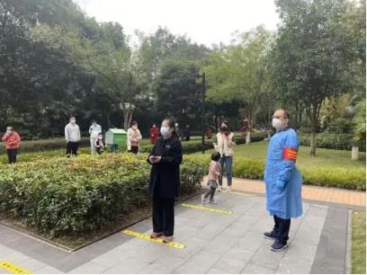 7時許,尹鵬飛熟練穿好防護服,戴好口罩和手套,開始仔細消毒。一身行頭齊備后,他正式開始了上午的工作:在小區(qū)內布置檢測點位、確定安全距離、安排志愿者、維持現場秩序;在疫情監(jiān)測卡點,勸返出入區(qū)人員,對確需入區(qū)的人員告知“人員只進不出的”管控措施,同時做好詢問來去、記錄時間、測量體溫等各項信息登記;一遍又一遍地給居民重復著“保持一米距離”“做完核酸不要逗留馬上回家”的提醒……他的動作有條不紊、回答耐心細致。一整套流程下來,已是下午2點。