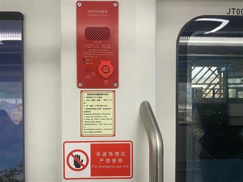在列車行駛過程中,如遇緊急情況,可按下乘客緊急報(bào)警器與司機(jī)聯(lián)系通話,讓司機(jī)及時(shí)了解車廂情況,便于采取有效措施。