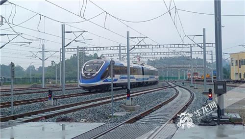 6月22日15時,伴隨著一聲清脆的鳴笛,身披藍(lán)色外衣的電客車停靠在銅梁西站,在一片歡呼聲中,重慶市域鐵路璧銅線熱滑試驗(yàn)圓滿完成。